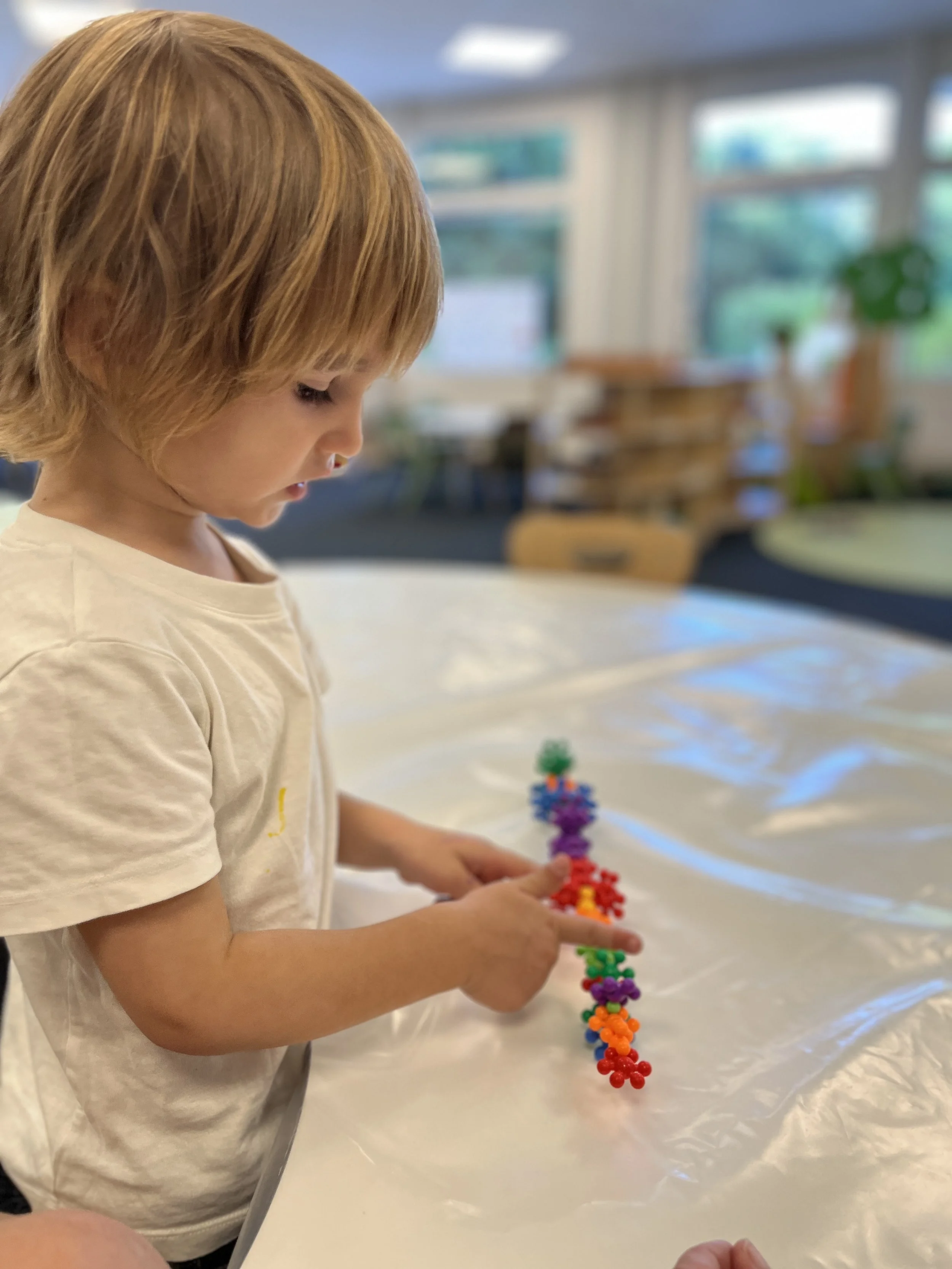 Outils : jeux de tri et de classement, blocs de construction, objets à encastrer, matériel de transvasement, puzzles, abaques, perles à enfiler, jeux de manipulation libre